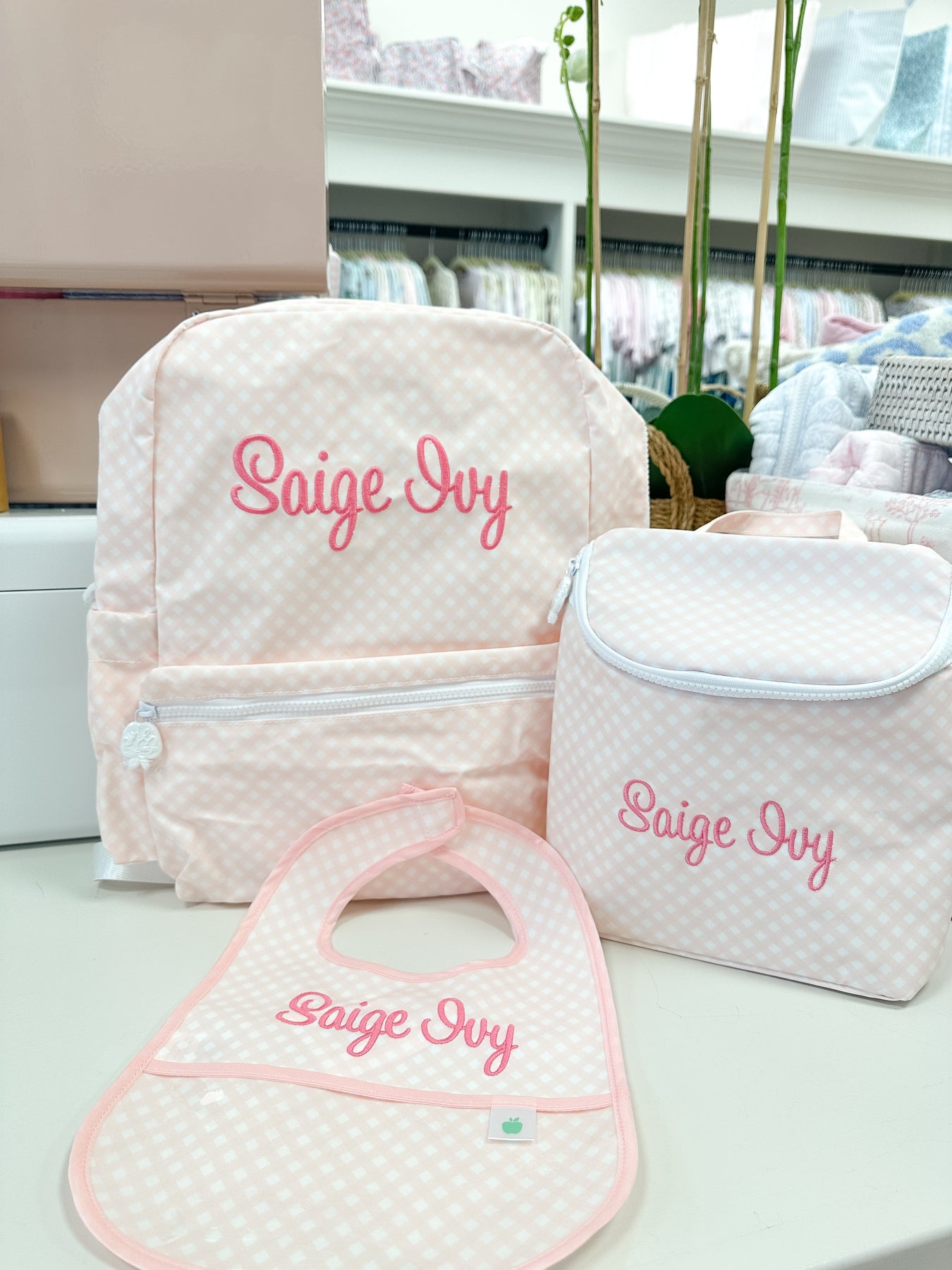 - The Backpack is offered in several wipeable classic patterns, and equipped with an outer zipped pocket and two drink holder sleeves.
