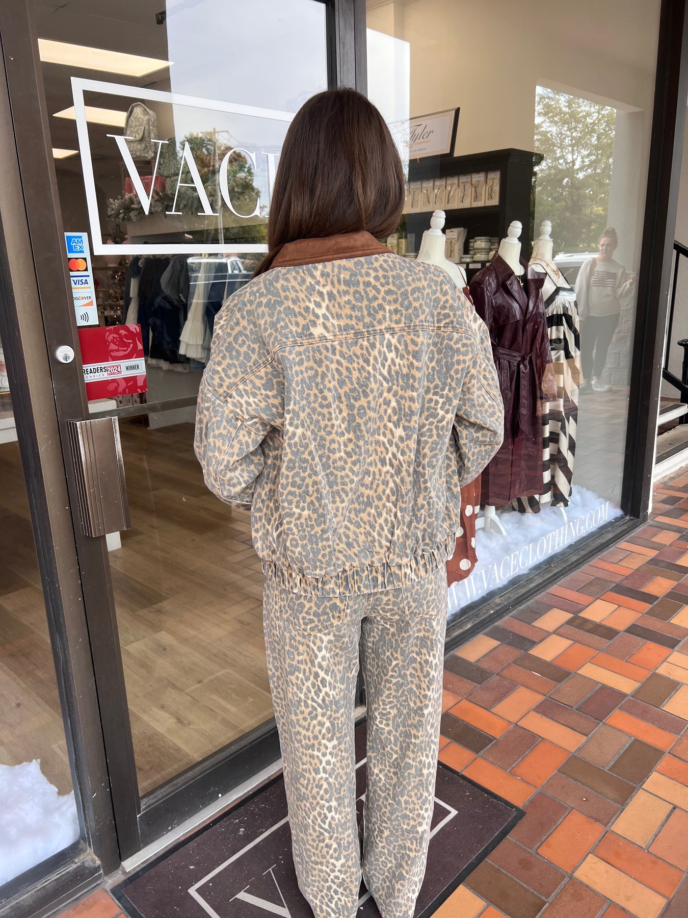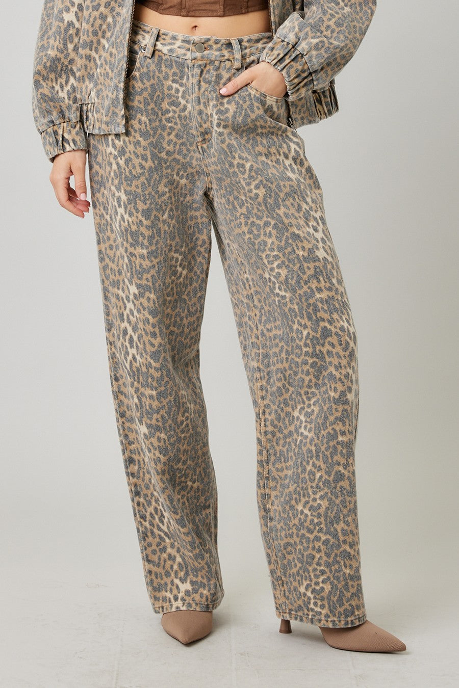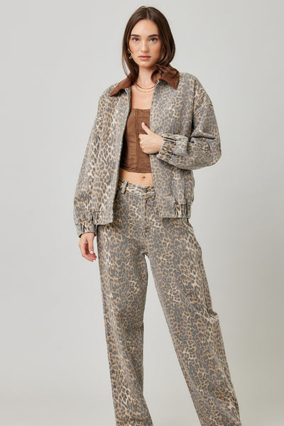 - Washed leopard jacket with contrast collar