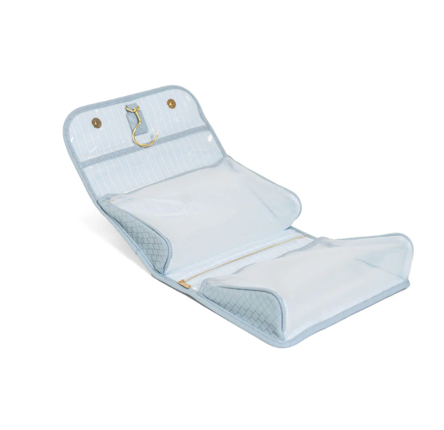 Effortless organization meets elevated design in our Luxe Woven Hanging Toiletry Bag, now available in Surf. Crafted in our signature wipeable woven material, this travel-ready essential is as practical as it is sophisticated. The thoughtfully designed interior features a pinstripe coordinate liner with a clear overlay, offering easy-to-clean function—designed to travel beautifully, wherever life takes you.
