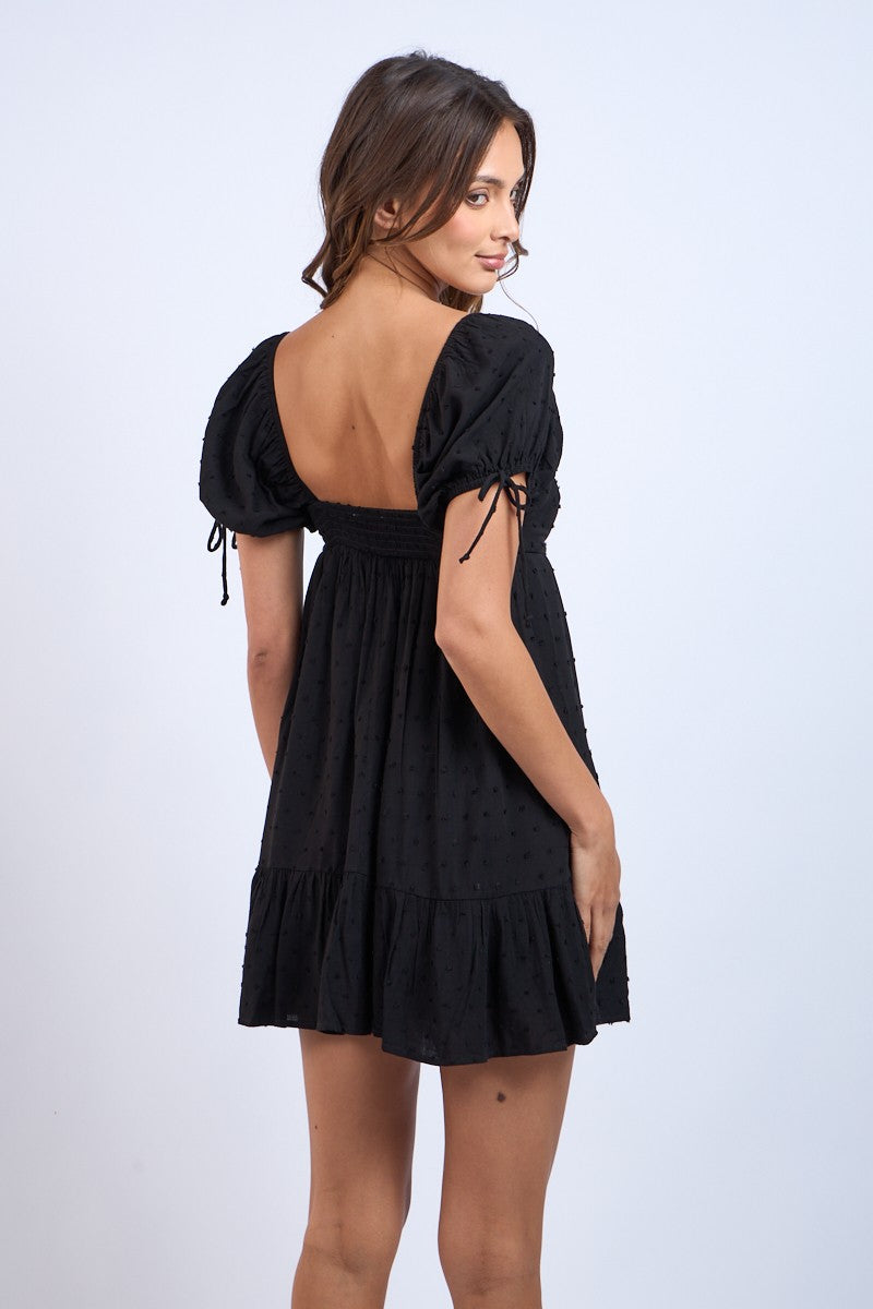 • Black dot puff sleeve dress
